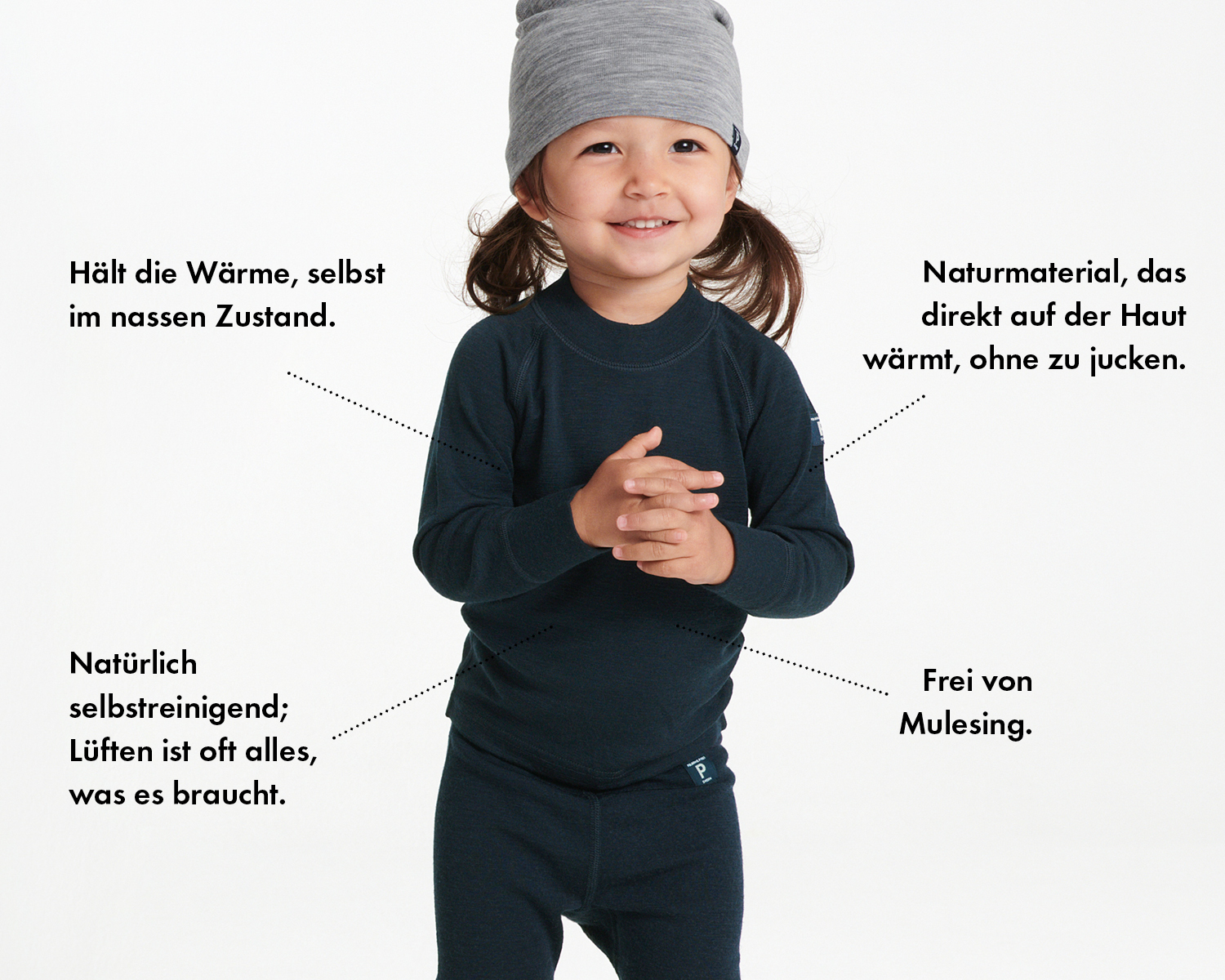 Selbst bei Temperaturen weit unter Null kommen Kinder leicht ins Schwitzen, wenn sie draußen spielen und aktiv sind. Durch Feuchtigkeit kühlt der Körper des Kindes aus, daher ist es wichtig, dass die Feuchtigkeit vom Körper abgeleitet wird. Zugleich soll die Kleidung das Kind in den kalten Monaten des Jahres wärmen.